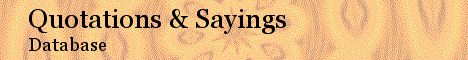 "The Quotations and Sayings Database" has been created over a period of two years by using collections from the Internet and personal collections of quotations. It is an invaluable site which has quotations listed by topic and author, as well as a search engine that enables the user to find a specific quote or author. The search engine has the ability to search for words that "sound like" the ones being searched for. It contains about 150 pages and about 20Mb. of textual data, as at 22nd January 2000.